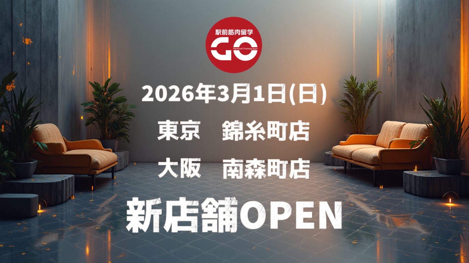 このたび、東京・錦糸町大阪・南森町に、駅前筋肉留学GOを2店舗同時オープンいたします!
